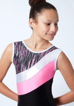 Put on a fierce performance in this blue tiger print leotard. Be the talk of the class thanks to the stand out metallic foil material. The sleeveless and round neck style means there are no restrictions as you leap, turn and tumble.