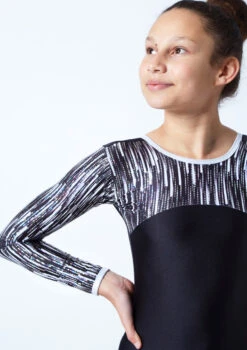 This design from the Alegra gymnastics collection is both an eye-catching and elegant choice for young gymnasts. Available in a choice of colours, this shiny nylon girl’s leotard features a silver crystal firecracker motif across the bodice, adding a sophisticated amount of sparkle.