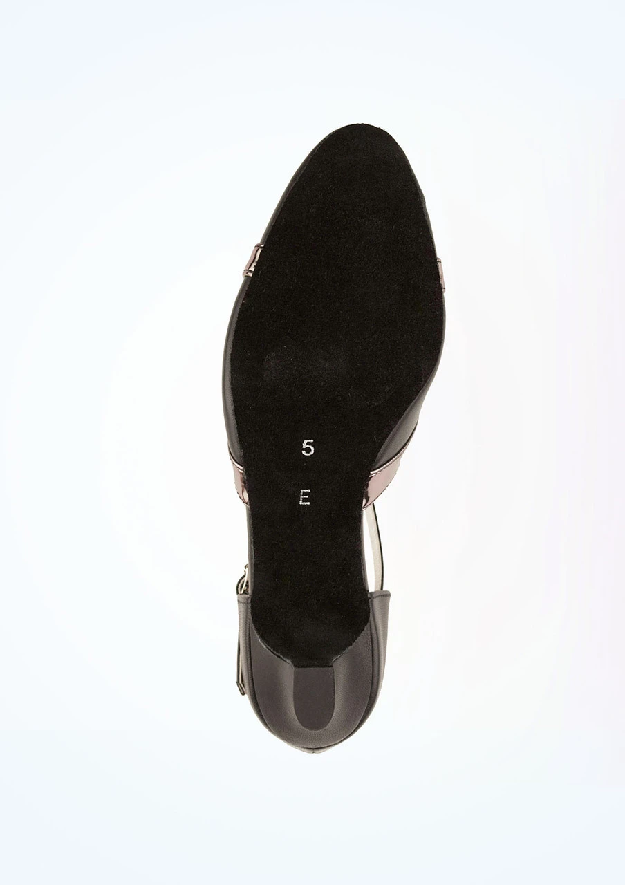 A simple yet stylish new Dancesteps ballroom shoe from Freed of London. This elegant dance shoe featuring a closed toe and T-Bar strap design helps stability of the foot when dancing. Made with a padded insole and flexible sole, ideal for practice of performances.