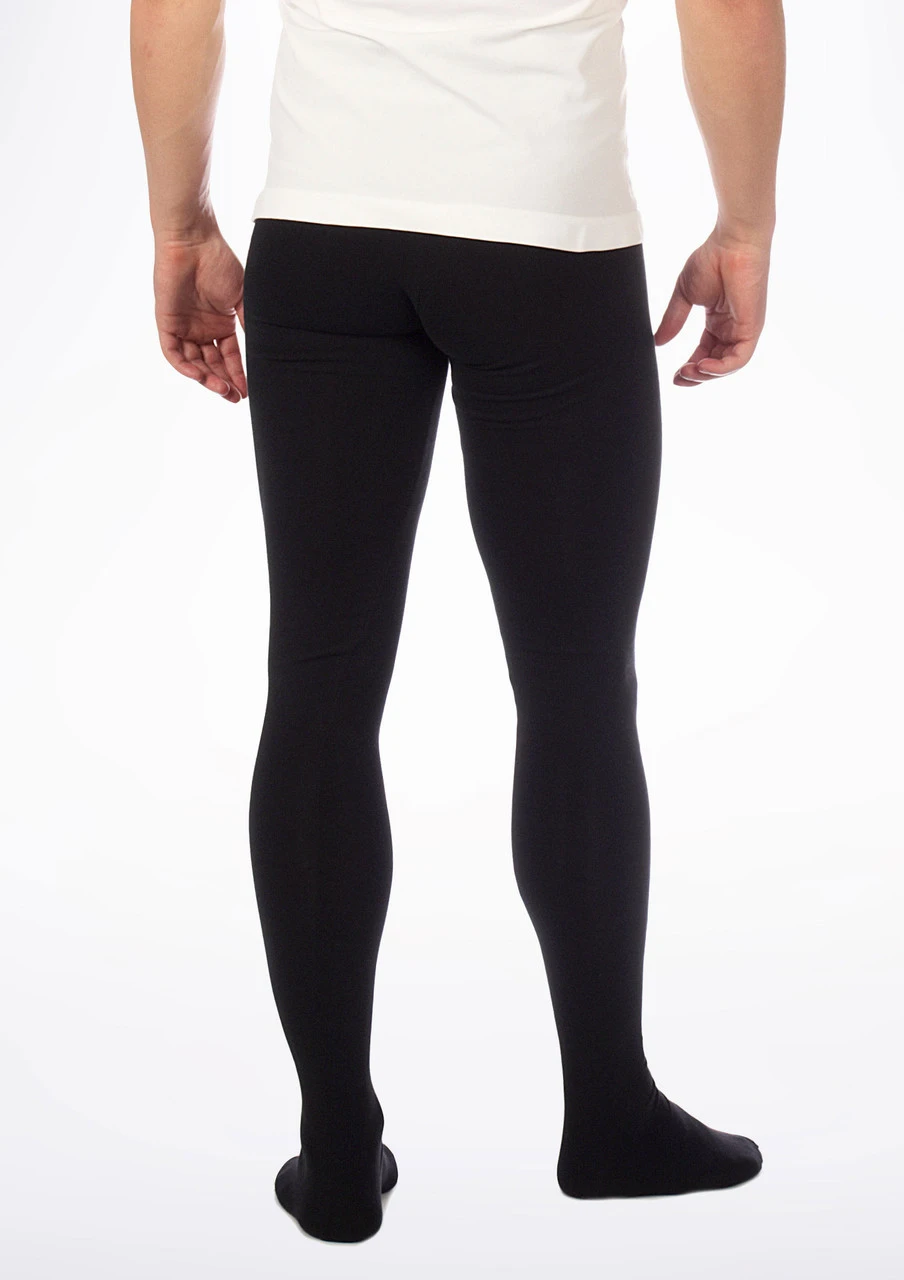 Thick and durable mens dance tights from Spanish brand Intermezzo. High waisted, footed tights in high performance fabric. Available in black and a unique royal blue colour.