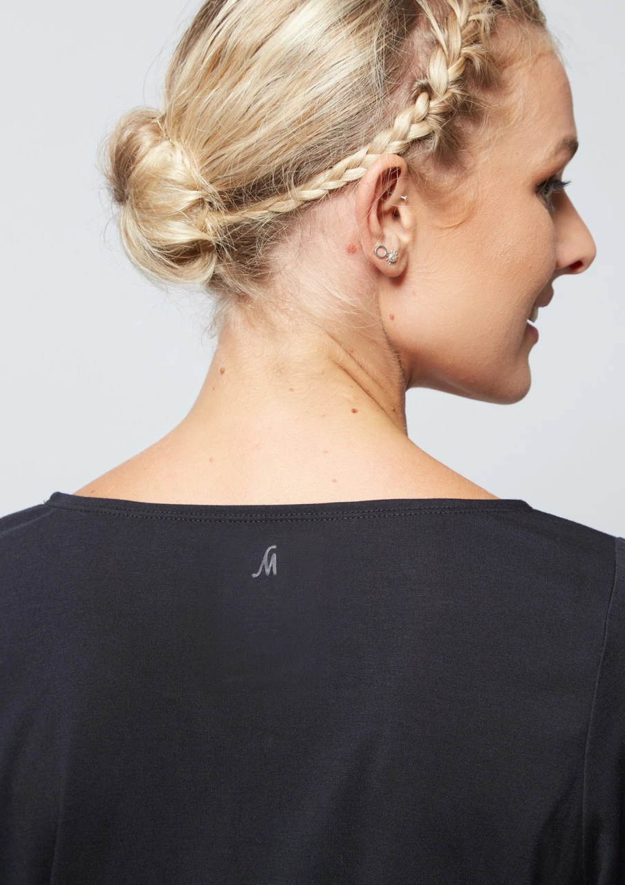 Energise your warm up with this loose-fitting long sleeve dance top. The loose style allows for comfort and spacious fit whilst the cuffed sleeves and waistband give a flattering look. The wide neckline means you can put on and take off the top without touching your hair or make-up.