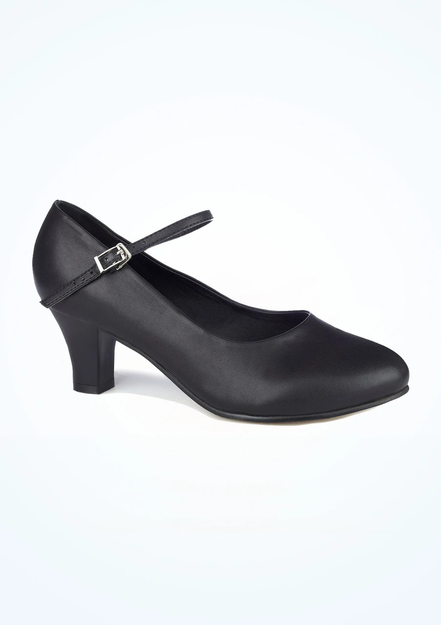 From the Move collection, a 2” heel character shoe in breathable synthetic leather – Super PU! Ankle strap with buckle fastening, a flexible resin sole, and a cushioned instock for extra comfort. Great for moderate levels of dance or stage work.