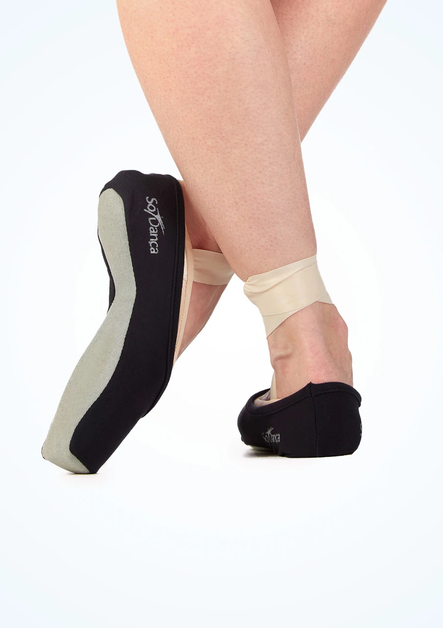 A practical, lightweight accessory designed for pointe and demi-pointe shoes. These covers from So Danca will help keep pointe shoes in pristine condition during warmups and off stage. Featuring subtle So Danca logo and non-slip suede sole.