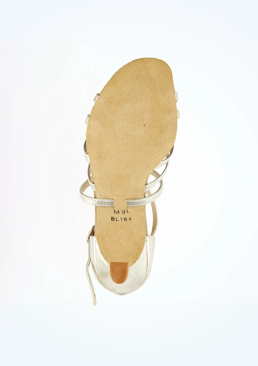 Stand out in these metallic silver ballroom shoes by So Danca. Suede soles are soft for comfortable and flexibile dancing, but rubber heel tips give you some additional grip. Classic design with a pocketed heel and strappy front. So Danca have created a plaited, cross over style in this shoe to give you something a little different for the dance floor.