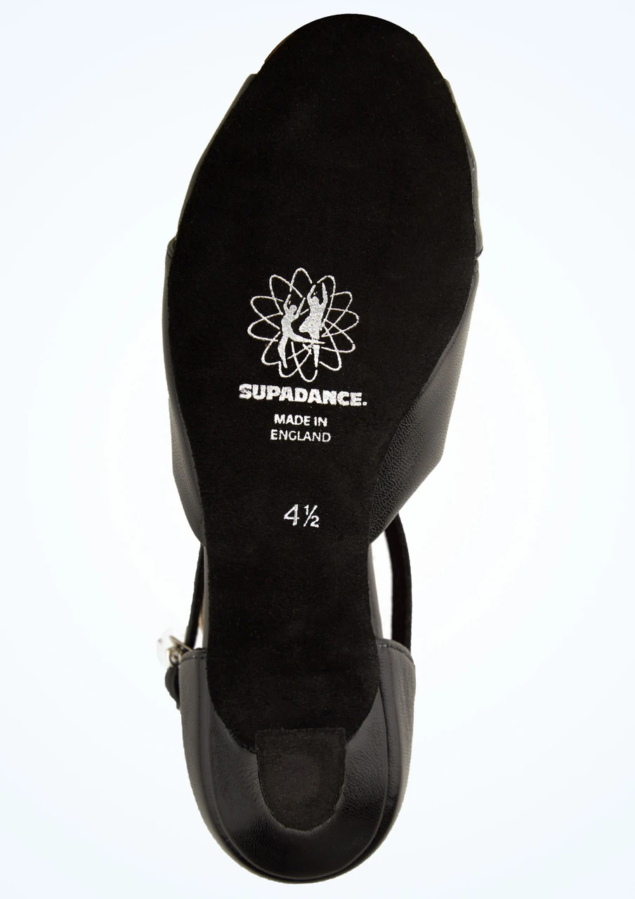 High quality sophisticated latin sandal from Supadance. Crossover vamp detail with peep toe design makes this shoe pretty and practical. Features a roller huck buckle so the shoe can be adjusted to fit.