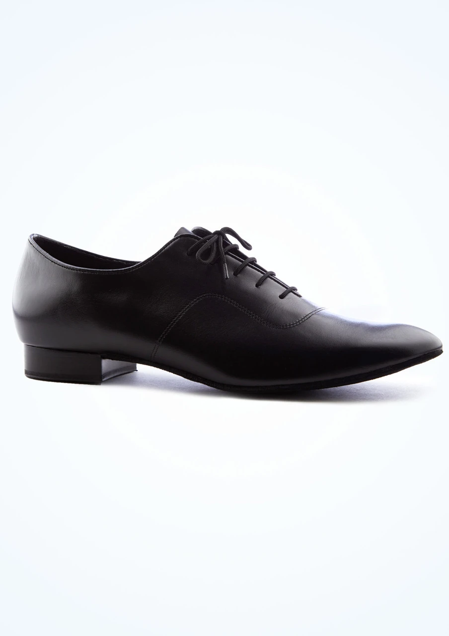 A classic mens ballroom shoe with low cushioned heel. The lengthened square toe feature provides comfort and support, great for practice and rehearsal.