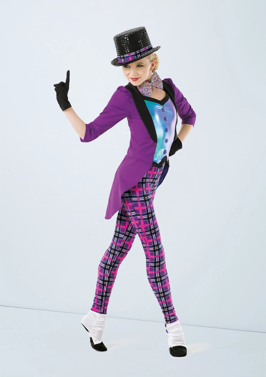 Channel your sweet tooth with this Willy Wonka-inspired full length unitard with an attached jacket and top hat. The zip closure costume makes the costume easy to put on and take off. The costume comes with a sequined hat, bow tie, gloves and satin shoe covers.